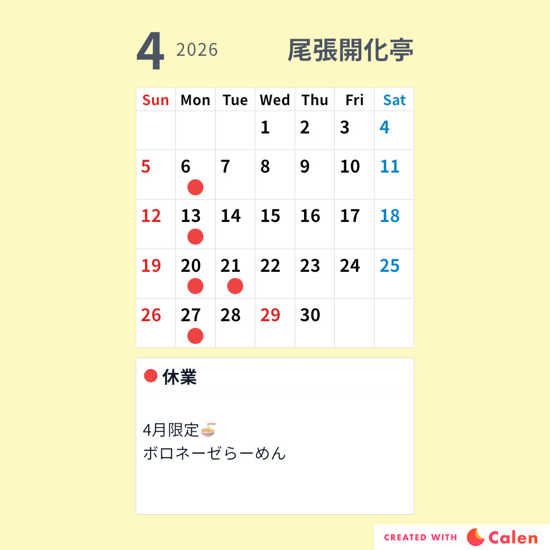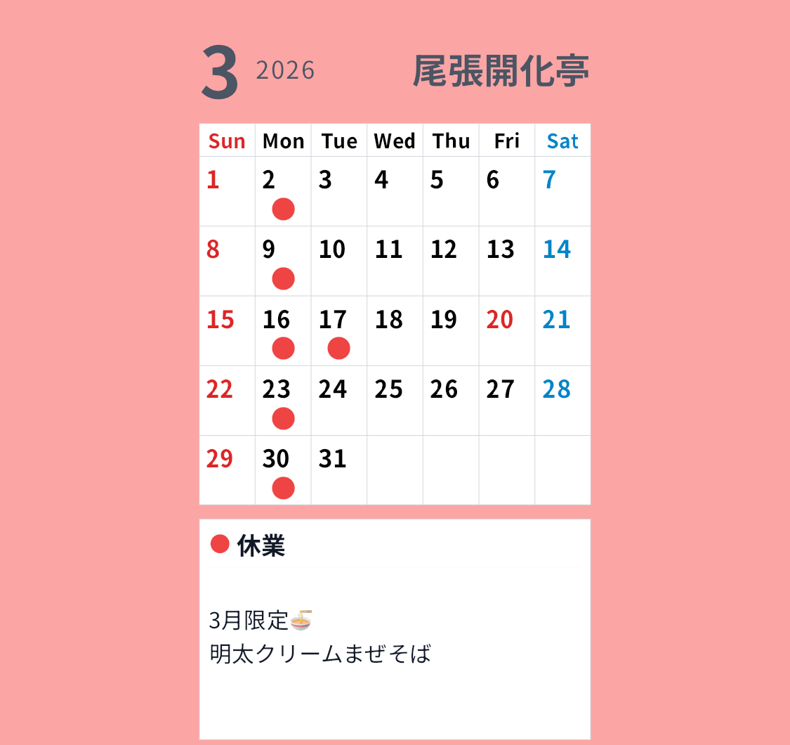 定休日のお知らせ
