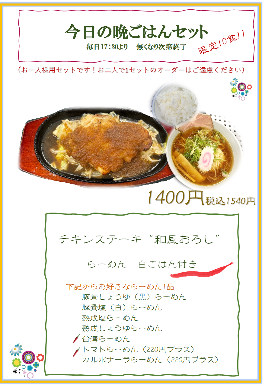夜/17:30~21:00平日 (金曜土曜22:00)